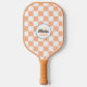 Geprüftes pfirsichweißes geometrisches Retro Monogram Pickleball Paddel. Personalisieren Sie Ihre individuelle Eingabe und Ihren eigenen Namen. Cooles, hintergrundgezogenes geometrisches Quadratmuster. Vintages Fliesen modernes Schachbrett Design.
