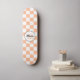 Scheckte pfirsichweiße geometrische Retro Monogram Skateboard. Personalisieren Sie Sportgeräte mit Ihrem persönlichen Initial und Namen. Cooles Retro-Schachbrett geometrisches quadratisches Muster.