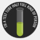 Bild eines halben vollständigen Reagenzglases mit Textlesen: "Ich bin ein Reagenzschlauch mit halb voller Person"