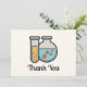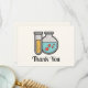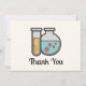 Vielen Dank Karte mit einer niedlichen Abbildung eines Teströhrchens mit gelber Flüssigkeit und einem abgerundeten Kolben/Becherglas mit grüner Flüssigkeit mit roten Blasen.