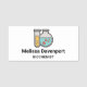 Namensschild mit einer niedlichen Abbildung eines Reagenzglases mit gelber Flüssigkeit und einem abgerundeten Kolben/Becherglas mit grüner Flüssigkeit mit roten Blasen.
