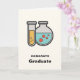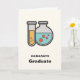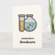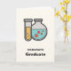 Abschluss-Karte mit einer niedlichen Abbildung eines Reagenzglases mit gelber Flüssigkeit und einem abgerundeten Kolben/Becherglas mit grüner Flüssigkeit mit roten Blasen.