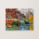 Bibel Verse des Erntedanks und Lob: "Oh, danke dem Herrn; denn Er ist gut. Psalm 118:1" Schöne Herbstszene mit bunten Herbstblättern und Wasser.