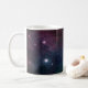 Die inspirierende Zitat-Tasse zeigt einen blauen und lila Sternenhimmel. Es enthält Bibel Verse Psalm 147:4 "Er zählt die Sterne und nennt sie alle nach Namen."