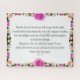 Psalm 1:1-3. In farbenfroher Blume grenzt.. Gesegnet ist derjenige, der nicht mit den Schlechten Schritt macht oder in der Weise steht, wie Sünder in Gesellschaft von Spockern gehen oder sitzen, aber dessen Freude im Gesetz des Herrn ist, und der an seinem Tag und seiner Nacht über Gesetz meditiert. Diese Person ist wie ein Baum, der von Wasserläufen gepflanzt wird, die seine Früchte in der Saison abgeben und dessen Blatt nicht verdorben ist, was immer sie auch gedeihen mag.