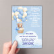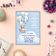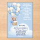 Celebrate the joyful arrival of your little prince with this boy baby shower invitation designed to be both sweet and meaningful. Featuring a charming teddy bear flying with multiple blue and white balloons, this invitation captures a sense of wonder, innocence, and happiness—perfect for welcoming a baby boy.