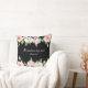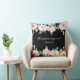 Ein Kissen mit inspirierender Zitat-Schrift zeigt ein wunderschönes, blumenfarbenes Aquarellbild mit weißen und rosa Rosen und Grünpflanzen auf schwarzem Hintergrund. Es zeigt einen Teil des geliebten Bibelverse-Psalms 23:3, "Er restauriert mein Soul."