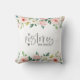 Ein Kissen mit inspirierender Zitat-Schrift zeigt ein wunderschönes, blumenfarbenes Kunstdesign mit weißen und rosa Rosen und Grünpflanzen. Es zeigt einen Teil des geliebten Bibelverse-Psalms 23:3, "Er restauriert mein Soul."