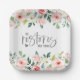 Teller mit inspirierender Zitatskriptur zeigen ein wunderschönes, blumenfarbenes Kunstdesign mit Rosen und Grünpflanzen in Weiß und Rosa. Es zeigt einen Teil des geliebten Bibelverse-Psalms 23:3, "Er restauriert mein Soul."