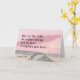 Christliche Grußkarte zeigt eine einfache, moderne Aquarellfarbe mit rosa Himmel über einem grauen Ozean, Strandpromenade. Es enthält einen ermutigenden Bibelverse Psalm 27:14, "Warte auf den Herrn; sei von gutem Mut, und Er wird dein Herz stärken." Der Gruß kann für eine handgeschriebene Nachricht personalisiert oder gelöscht werden.