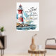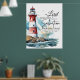 Poster mit inspirierender Zitatskriptur zeigt einen rot-weißen Leuchtturm an einer felsigen Küste. Es zeigt einen mächtigen und ermutigenden Bibel Verse Psalm 27:1, "Der Herr ist mein Licht und meine Errettung; wen soll ich fürchten? Der Herr ist die Kraft meines Lebens; von wem soll ich Angst haben?"