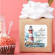 Ein Aufkleber mit inspirierender Zitatschrift zeigt einen rot-weißen Leuchtturm an einer felsigen Küste. Es zeigt einen mächtigen und ermutigenden Bibel Verse Psalm 27:1, "Der Herr ist mein Licht und meine Errettung; wen soll ich fürchten? Der Herr ist die Kraft meines Lebens; von wem soll ich Angst haben?"