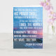 Eine Karte mit der Bibelpassage von Psalm 34:1-3, werde ich den Herrn zu jeder Zeit segnen, Sein Lob wird ständig in meinem Mund sein.
