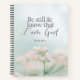 Personalisiertes Notizbuch, Zeitschrift mit inspirierender Zitatschrift, zeigt einen einfachen botanischen Garten mit hübsch rosa Blume und einem weichen blauen Hintergrund. Es enthält Bibel Verse Psalm 46:10, "Sei still und weiß, dass ich Gott bin." Die Rückseite mit einem Namen oder Details Ihrer Wahl angepasst.