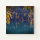 Notizbuch mit Inspiration, Zeitschrift zeigt ein Fallnaturfoto mit Ästen aus gelben und roten Herbstblättern, die einen See mit blauem Wasser umrahmen. Es zeigt einen ermutigenden Bibelverse Psalm 46:1, "Gott ist unsere Zuflucht und Stärke, eine immer präsente Hilfe in Schwierigkeiten."