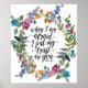 Das inspirierende Schriftenposter zeigt einen hübschen, farbenfrohen Wasserfarbenkranz mit wilden Wiesenblauen, rosa und orangefarbenen Blume und Pflanzen. Es enthält Bibel Verse Psalm 56:3, "Wenn ich Angst habe, vertraue ich dir." _