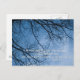 Psalm 5:3 Meine Stimme wirst du am Morgen hören. Foto zeigt einen auffallend blauen Himmel mit Baumgliedmaßen und Mond.