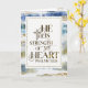 Die Grußkarte für inspirierende Zitat-Schriften zeigt einen modernen goldenen, blauen und weißen Hintergrund. Es zeigt Bibel Verse Psalm 73:26, "Er ist die Stärke meines Herzens." Im Inneren kann das Gebet für eine handschriftliche Notiz angepasst oder gelöscht werden.*