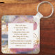 Schlüsselanhänger mit inspirierender Zitatskriptur zeigt einen modernen, rosa und blauen abstrakten Hintergrund mit Goldakzenten. Es zeigt einen mächtigen und ermutigenden Bibelverse aus Psalm 91:14-15, sagt der Herr: "Ich werde diejenigen retten, die mich Liebe leisten. Ich werde diejenigen schützen, die meinem Namen vertrauen. Wenn sie mich anrufen, werde ich antworten; ich werde mit ihnen in Schwierigkeiten sein. Ich werde sie retten und ehren."