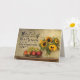 Eine inspirierende Zitat-Erntedank-Grußkarte zeigt ein schönes Stillleben mit einer Vase von Sonnenblumen und Schüssel Obst. Es enthält einen Teil von Bibel Verse Psalm 95:2, "Lass uns in seiner Gegenwart mit Erntedank."_