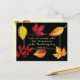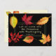 Inspirationsskriptur-Erntedank-Postkarte zeigt wunderschöne Herbstlaube rund um den Bibel Verse Psalm 95:2, "Lass uns in seiner Gegenwart mit Erntedank;!"-