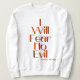 Das Sweatshirt zeigt die Psalmen 23:4 KJV Bibelschrift "I Will Fear No Evil" in einem einzigartigen Schriftart mit orangefarbenen Buchstaben, schwarzer Kontur und Bibelziitation. Dieses Sweatshirt ist aus 100% Baumwolle hergestellt. Dieses Shirt ist sowohl plush als auch haltbar, was eine großartige Kombination mit einem kleineren passenden Bild auf der Rückseite ergibt.