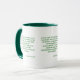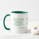 Diese zweifarbige Tasse hat die "Psalms 24:4-5" Bibel Zitat-Schrift KJV in einem kühlen Lovelo Print-Schriftart mit grünen Buchstaben und blauen Bibelziitation in diesem Bibelzitat aus der King James Bibel. Die Felgen & Griffe sind in passenden Farbtönen in Mikrowellen- und Geschirrspüler-Keramik in 11 Unze- oder 15 Unzen-Größen erhältlich.