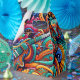 Dieses lebendige und aufwändige Kunstwerk verbindet das Wesen psychedelischer 60er- und 70er-Musikkultur mit detaillierten batik-inspirierten Mustern. Mit elektrischen Gitarren eingebettet in wirbelnde, farbenfrohe Blumen- und Paisley-Elemente, ist dieses Design eine Feier der Musik und Kreativität. Die farbenfrohe Farbpalette von Blues, Orangen, Grüntönen und Rot macht es zu einem beeindruckenden Statement. Ideal für Musikliebhaber, Gitarrenfans und Fans von Retro-Ästhetik. Ideal für Bekleidung, Accessoires und Wohngestaltung.