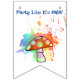 Psychedelische Boho Retro Party Amanita Pilz Jagdfahnen verfügen über einen farbenfrohen abstrakten Cartoon wie Fly Muscaria Pilz mit seinen weißen Punkten auf leuchtend rot. Dieser coole Pilz ist umgeben von farbenprächtigen psychedelischen Spritzern in den Farbtönen lila, grün, orange, gelb und rosa. Der lustige Pilz und der bunte Spritzer sind auf jeder Flagge, mit abwechselnd hellblauem Hintergrund mit hellgrünem und hellgrünem Text, der "Psychedelic Rush" (und, nein, das ist kein Tippfehler) und weißem Hintergrund mit hellblauem Text sagt: "Party like It's 1969!" Aber mit den einfachen Designtools von Zazzle können Sie die Hintergrundfarben, die Kunst und den Text zu allem ändern, was Sie bevorzugen. Weitere coole Vorräte und Geschenke finden Sie in unserem Shop unter zazzle.com/VicesAndVerses. Party an.