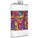 Add a burst of chaotic color to your next adventure! This 6oz stainless steel flask features a high-quality vinyl wrap printed with a wildly energetic "Monster Mash" pattern. The design is a crowded sea of expressive, wide-eyed creatures in a vivid palette of electric blue, hot pink, sunshine yellow, and deep purple