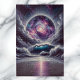 Das Bild entfaltet ein majestätisches kosmisches Panorama gegenüber einer stürmischen Strandszene. Im Vordergrund erblickt die stürmische Küste Wellen mit einem wütenden Verhalten, das mit Gewalt abstürzt, deren Wut durch ein gedämpftes, rosa Licht erhellt wird. Oben werden die Himmel von einer grandiosen Himmelskörperschaft beherrscht, die eine wirbelnde Galaxie widerspiegelt. Es platzt in satten Farbtönen wie Püree, Blues und Pink, und sein Kern strahlt eine brillante Luminanz aus. Blühende, dichte Wolken umschließen diese Galaxie, die einen Eindruck von einem Himmelsturm vermitteln, während Lichtstreifen wie Meteore durch einen Regen durchbrochen werden. Ferne Planeten oder Monde sind über die tiefe, sternenreiche Weite gesprengt, die in einer Szene gipfelt, die die wilde Seite der Natur mit den Geheimnissen des Universums vermischt.
