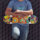 Psychedelisches Deck für Skateboard.Machen Sie es sich selbst durch Hinzufügen Ihres Textes. Um auf erweiterte Bearbeitungstools zuzugreifen, gehen Sie bitte zu "Personalisieren Sie diese Vorlage" und klicken Sie auf "Details", scrollen Sie nach unten und drücken Sie den Link "Klicken Sie auf, um die Vorlage anzupassen".