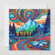 Ai Art zeigt einen farbenfrohen Disccours in den Bergen und Pinien in Blau, Orange und Grün.