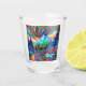 Ai Art zeigt einen farbenfrohen Disccours in den Bergen und Pinien in Blau, Orange und Grün.