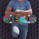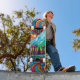 Ai Art zeigt einen farbenfrohen Disccours in den Bergen und Pinien in Blau, Orange und Grün.