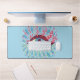 Psychedelische Augentischmatte mit einer farbigen Abbildung eines bizarren blauen Auges mit großen, abgerundeten, rosa Wimpern, überall fließenden hellblauen Tränen und vielen rosa und grünen Elementen - Erweiterungen der Wimpern.