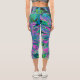 Psychedelic Magenta Aqua und Lime Green Dahlia Capri Leggings
