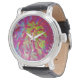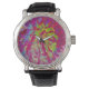 Psychedelic Magenta und Yellow Dahlia Blume Armbanduhr
