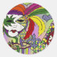 Psychedelic Mardi Gras Feather Mask Runder Aufkleber