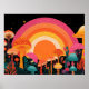 Psychedelic Mushroom Sunset – Retro Fantasy Nature Poster