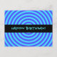Psychedelic Neon Blue Circles Happy Birthday Postkarte