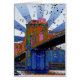 Psychedelic NYC: Brooklyn Bridge #2 Eine skurrile, farbenprächtige, psychedelische Pop-Kunstansicht der berühmten Brooklyn Bridge in New York City. Farben: blau, weiß, rosa, orange, gold, grün.