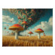 Psychedelisch Paisley Mushroom Poster. Dieses Poster zeigt psychedelische Pilze aus Pisley, die wie ein Tornado über die Getreidefelder von Kansas fliegen, mit winzigen Samen und Sporen, die im Wind schwingen.