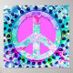 Friedenszeichen mit Punkten und Wirbel in heißen Neontönen in Rosa, Blau, Grün und Gelb, von Justin Allen. Coole niedliche schöne künstlerische Hippie trippy psychedelic Vintag Retro 60er Stil spirituelle inspirierende abstrakte Kunst.
