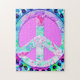 Abstrakt cool & trippy! Friedenszeichen mit Punkten und Wirbel in heißen Neontönen in Rosa, Blau, Grün und Gelb. Von Justin Allen. Coole niedliche schöne künstlerische Hippie trippy psychedelic Vintag Retro 60er Stil spirituelle inspirierende abstrakte Kunst.