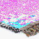 Diese hochwertige Decke zeigt ein intensives psychedelisches Farbspiel aus Pink, Lila, Blau, Grün und Rot, das sich wie ein strahlender Lichtburst aus der Mitte heraus entfaltet.