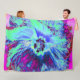 Psychedelic Retro Green und Blue Hibiskus Blume Fleecedecke