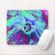 Psychedelic Retro Green und Blue Hibiskus Blume Mousepad