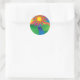 Die Sonne erhebt sich über den Bergen, und ein Fluss fließt durch sie, alles in Neonfarben wie Orange, Rosa, Grün, lila und Blau auf einem Aufkleber