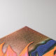 Sehen Sie die Welt im Zentrum der Sonnenblume. Die Interpretation eines Künstlers durch Sheryl Karas in farbigen Farben wie Blassorange, Rosa, Bronze, Grün und Blau.